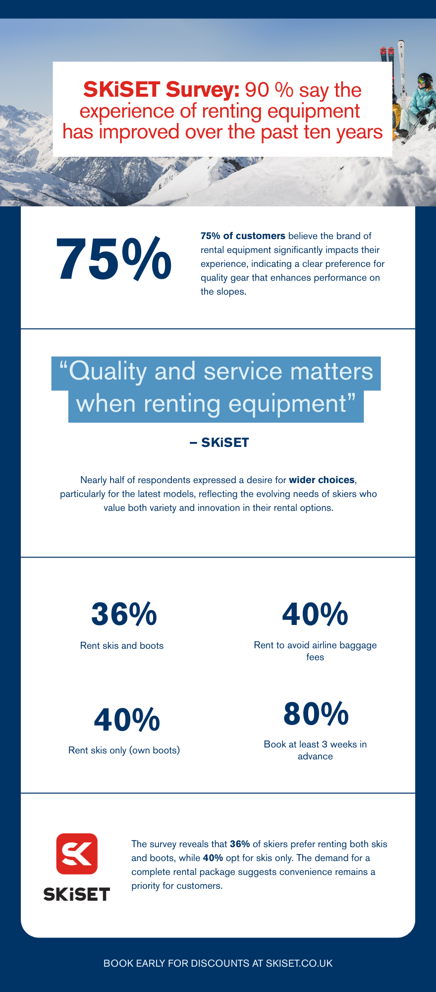 75% of respondents also said that the rental brand, such as SKiSET was important to them in some way, with the remaining 25% stating it wasn’t so important.